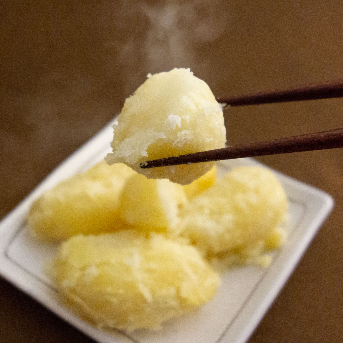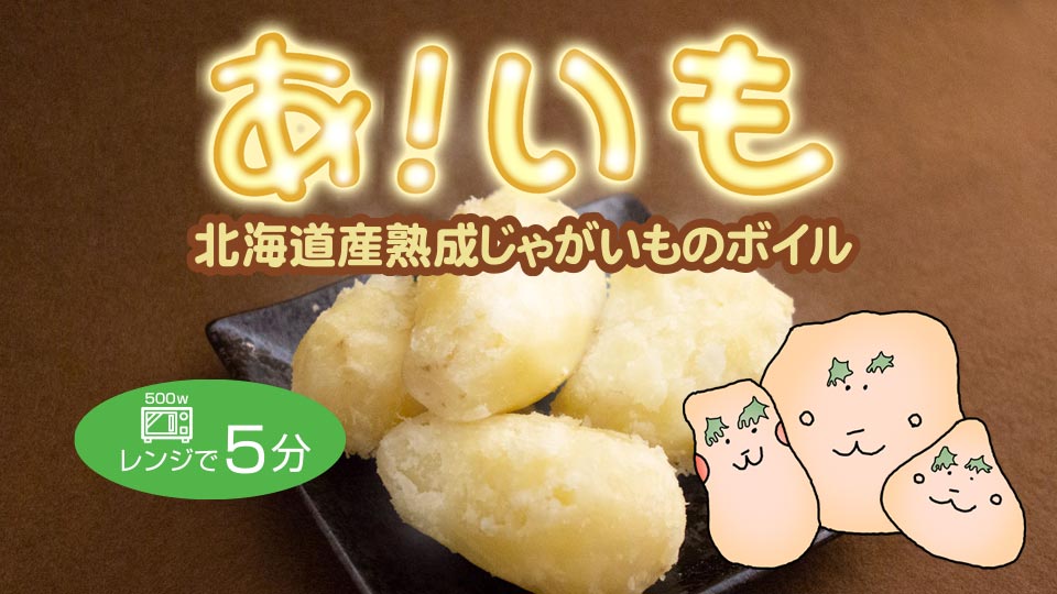 じゃがいもの美味しさが一番感じられる食べ方といえば粉ふきいも。でも調理は案外面倒で、しっとりホクホクに美味しく作るのはむずかしいもの。「あ!いも」は格別の美味しさを手軽に召しあがれるように、手間ひまかけた調理済みの粉ふきいもを冷凍の真空パックにしました。