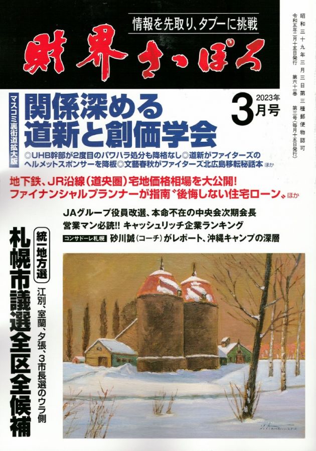 2023年2月15日 財界さっぽろ3月号にて 化粧水「登別温泉の肌」紹介して頂きました。